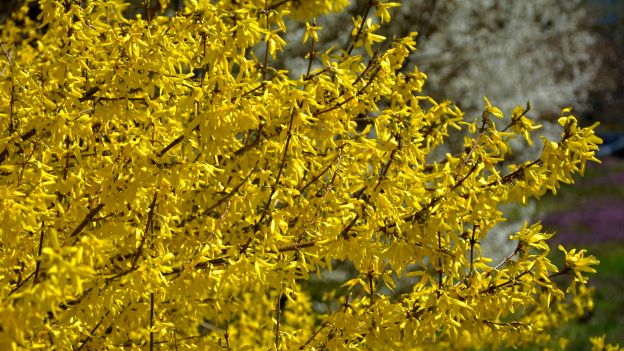 Co roku sadzę jesienią zamiast tui. Ten złocisty krzew zachwyca wiosną kolorami słońca