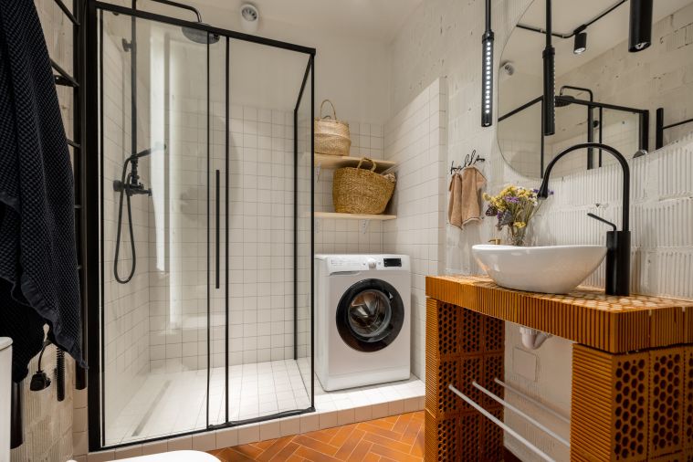 Drewno, nawet w formie płytek imitujących jego fakturę, sprawia, że łazienka stanie się cieplejsza. Dobrze komponuje się z terakotą i beżami, budując wrażenie przytulnego, nowoczesnego wnętrza. Warto też zadbać o tekstylia. Puszyste ręczniki w kolorach ziemi i lniane zasłonki wprowadzają lekkość i naturalność. Na koniec światło, bo to przecież kluczowy element nastroju. Ciepłe, rozproszone oświetlenie w formie kinkietów, lamp z mlecznego szkła czy podświetleń LED doda wnętrzu głębi. W połączeniu z kolorami ziemi stworzy atmosferę, która koi i relaksuje.