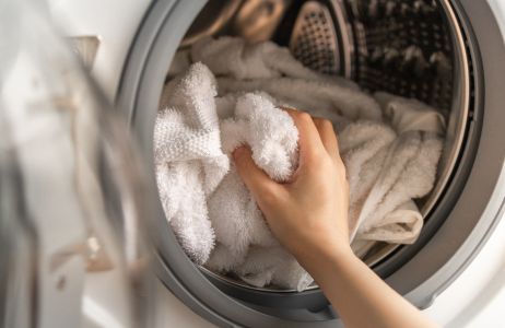Wymieszaj 2 składniki i wrzuć do bębna z pożółkłymi ręcznikami. Po praniu będą białe jak po wybielaczu
